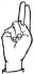 На ћирилици написано КОСТАДИН ПЕШТЕРАЦ састоји се из 16 слова [?]. Исписано ћириличном једноручном азбуком за глувонеме: